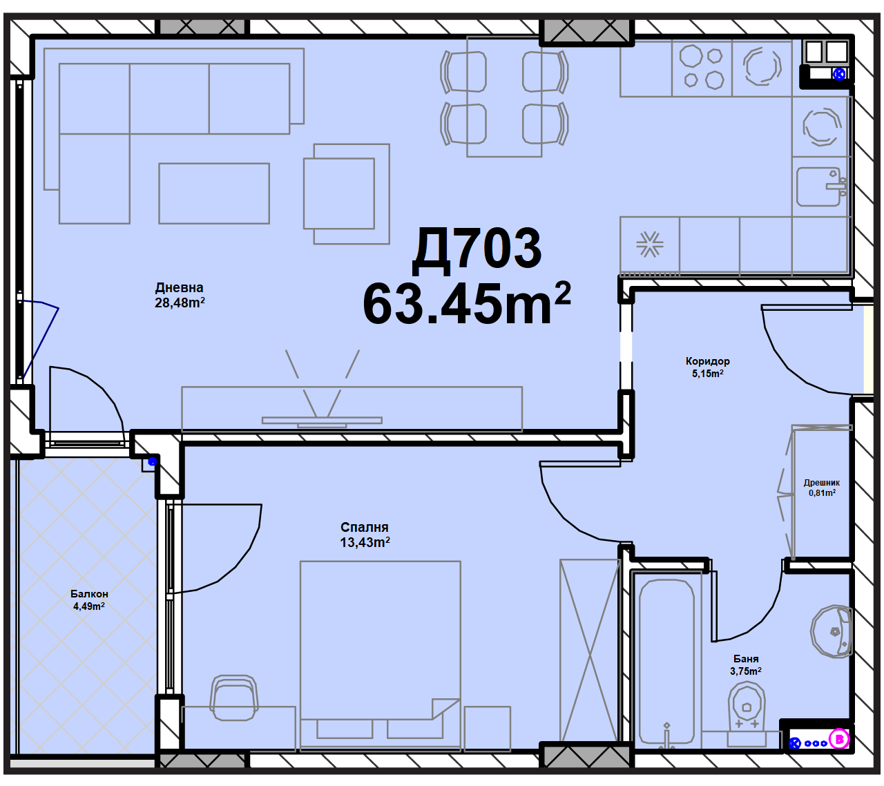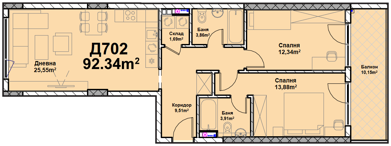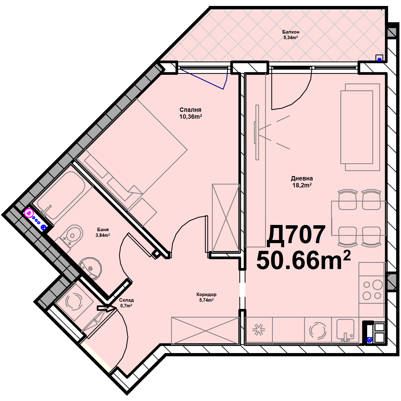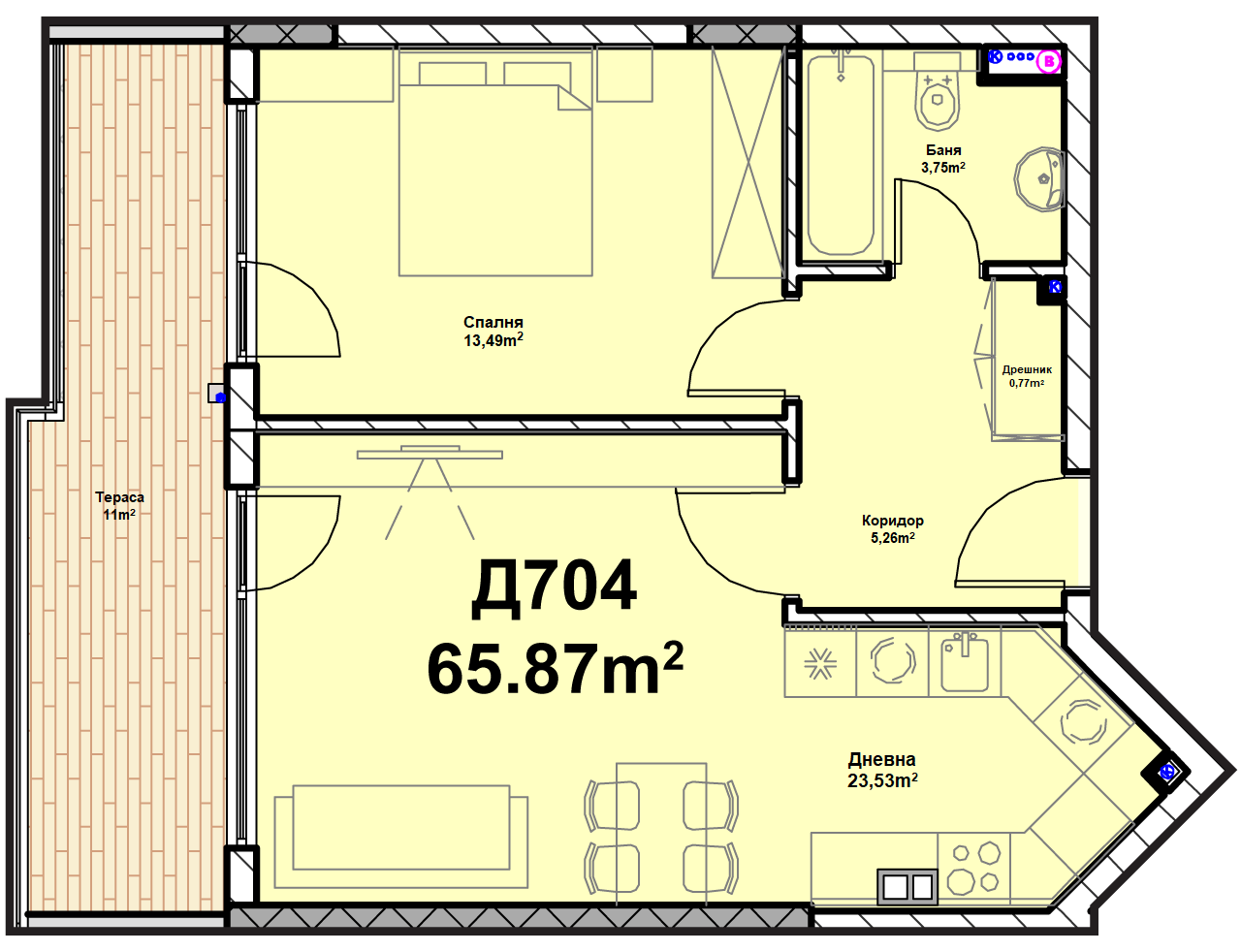 Етаж 8 от вход Д се състои от 7 двустайни и тристайни апартамента