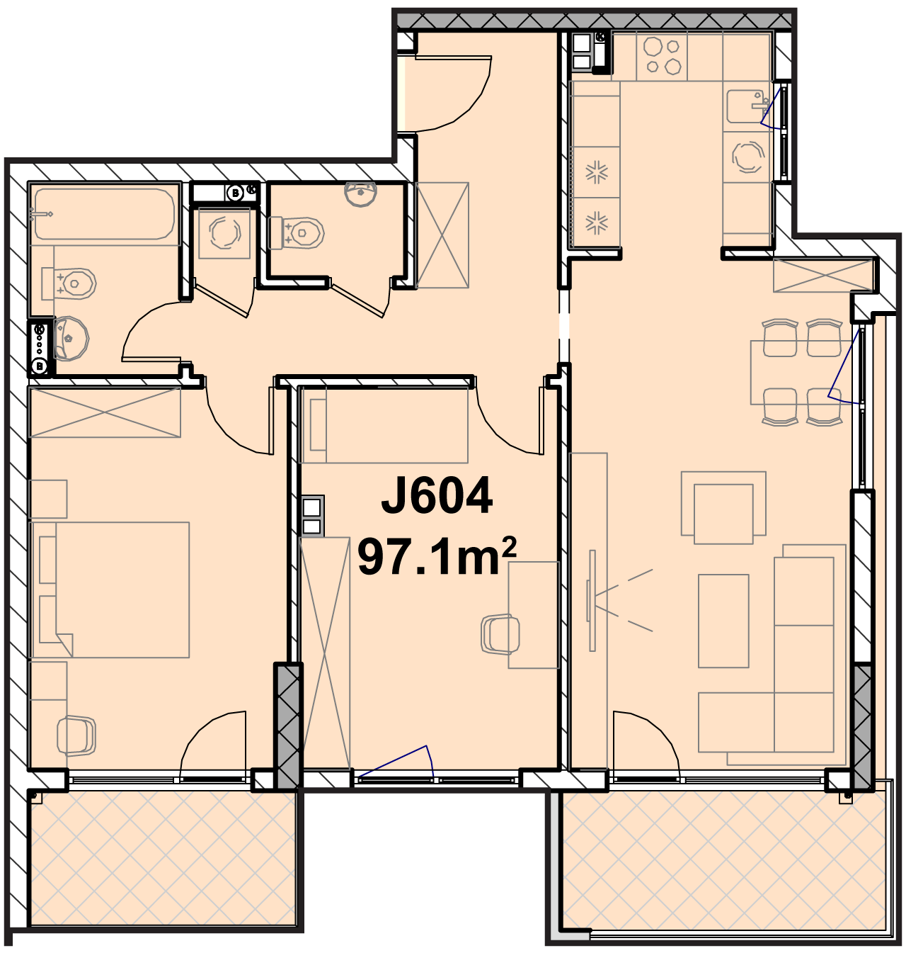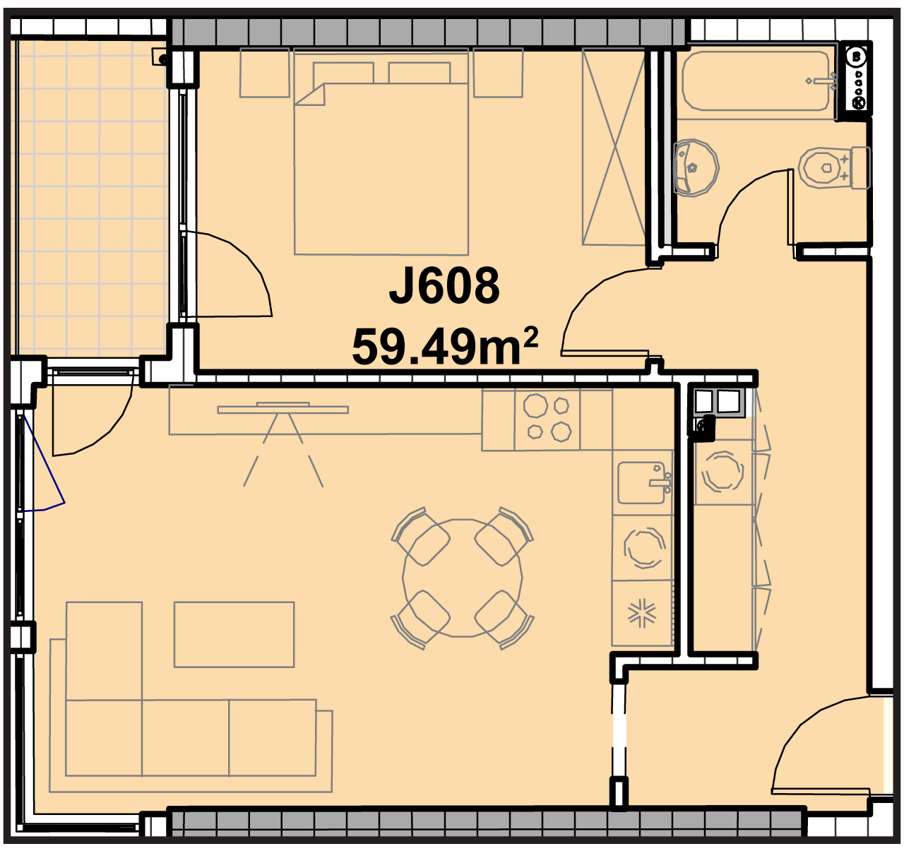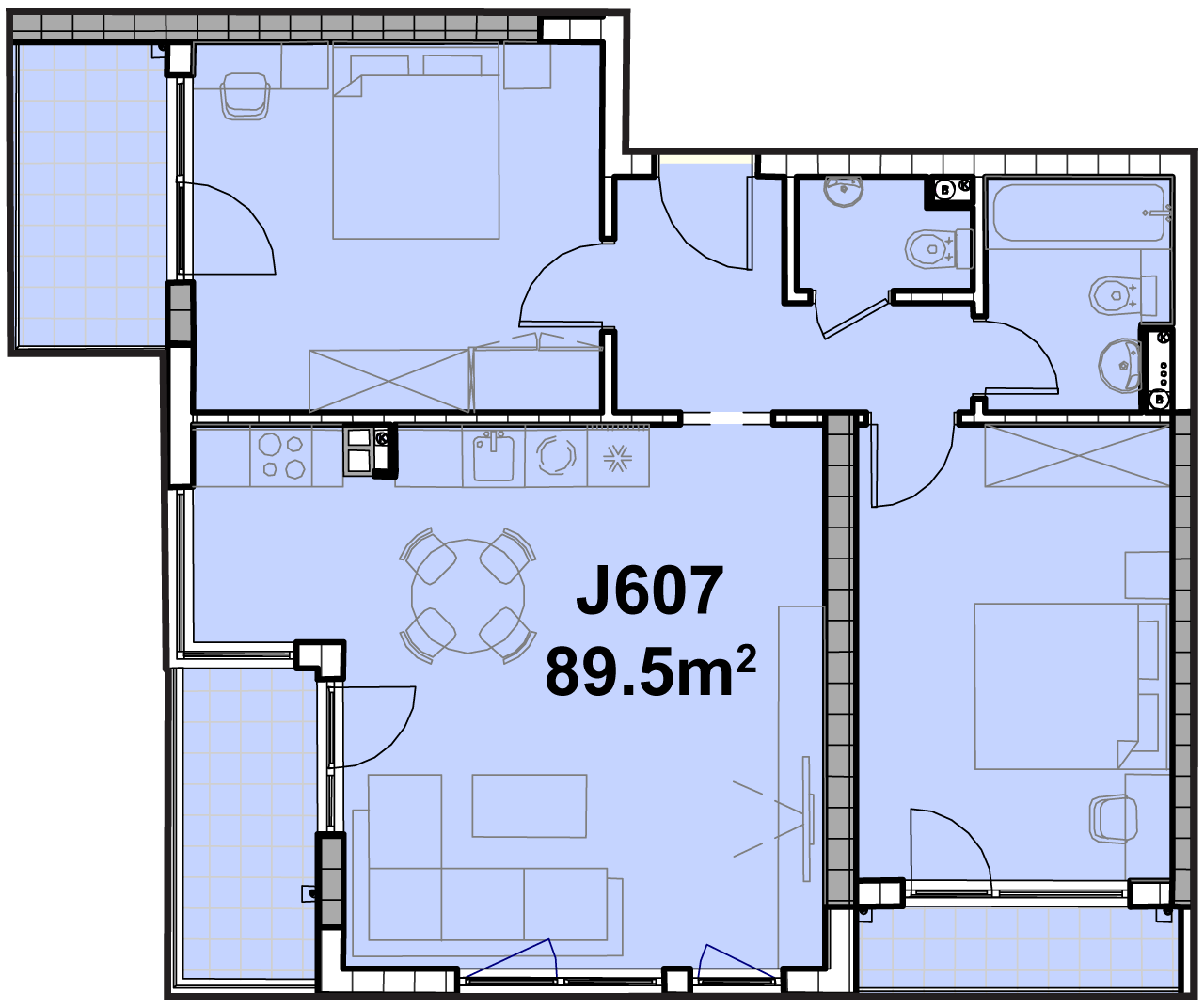 Етаж 7 от сграда Ж се състои от 9 апартамента с 1 или 2 спални и тераси.