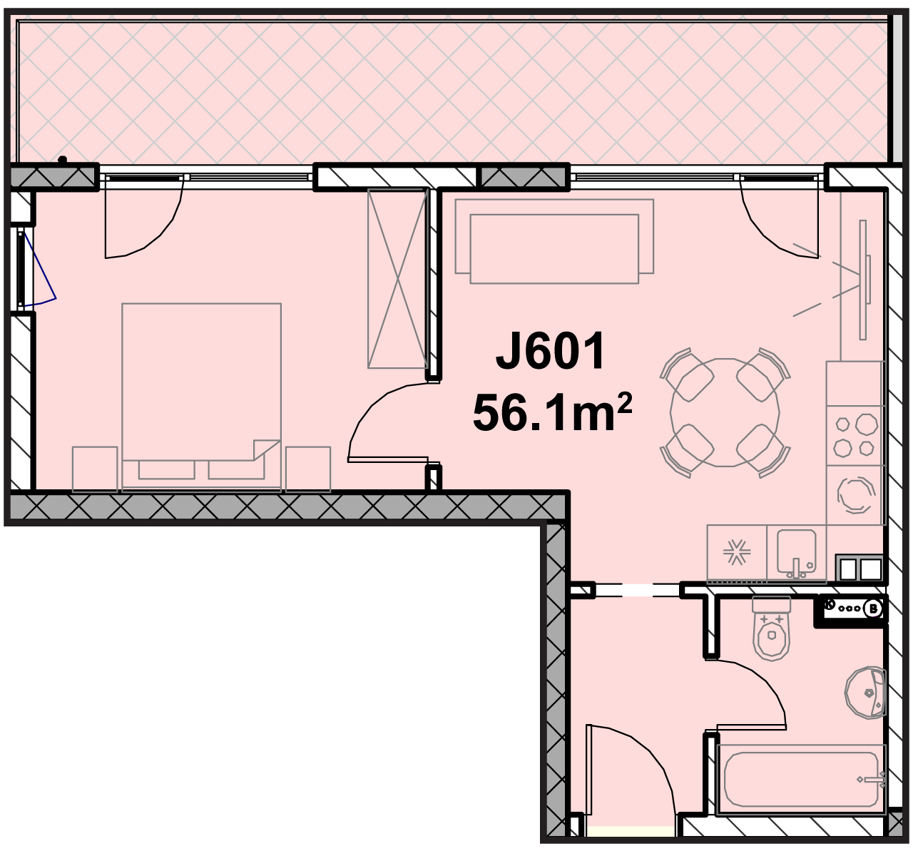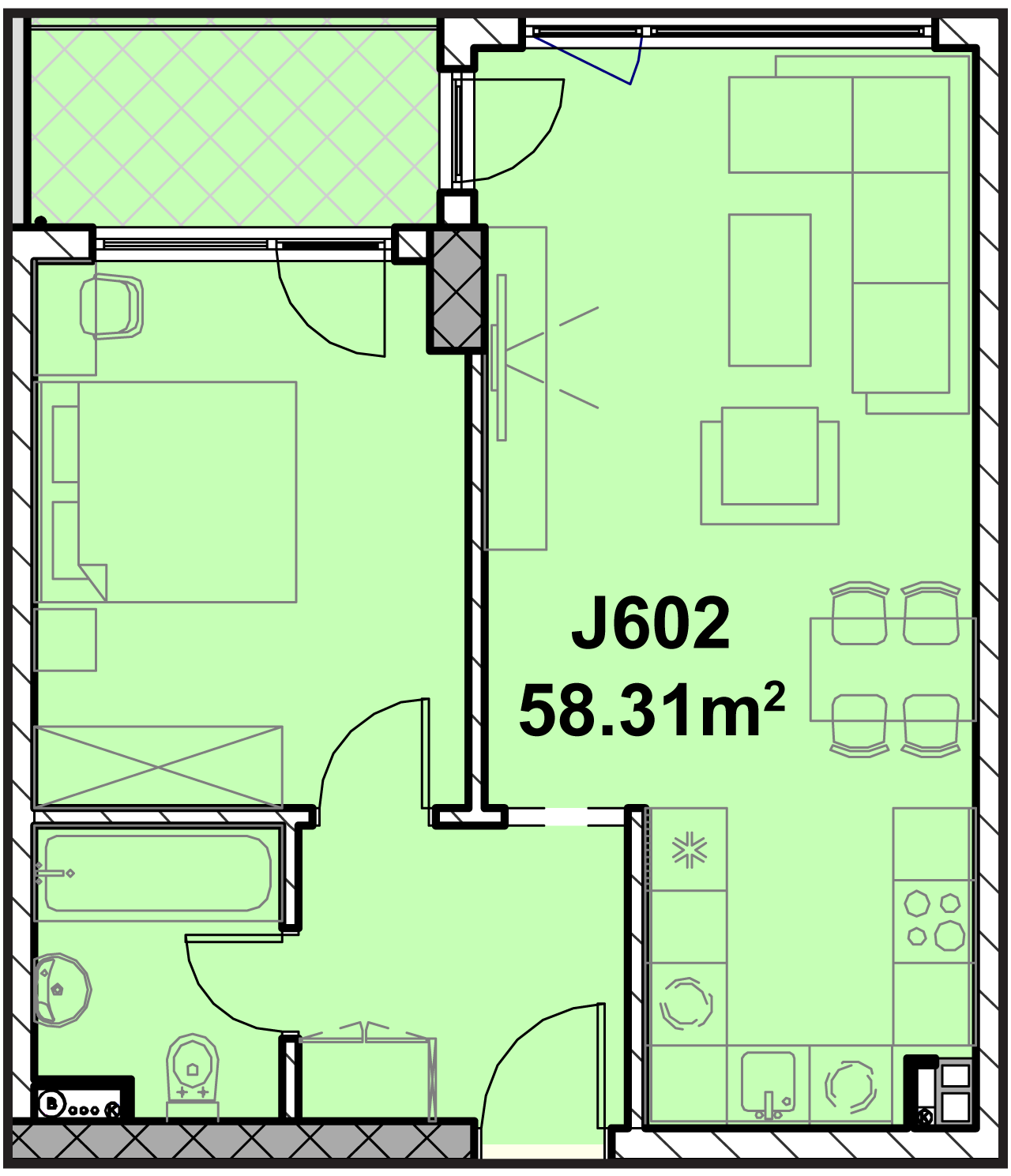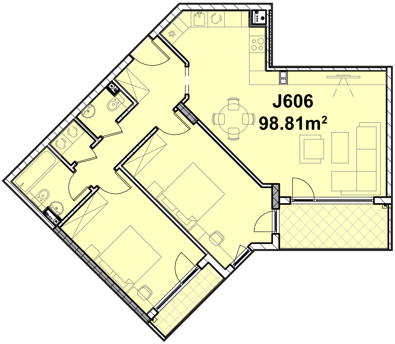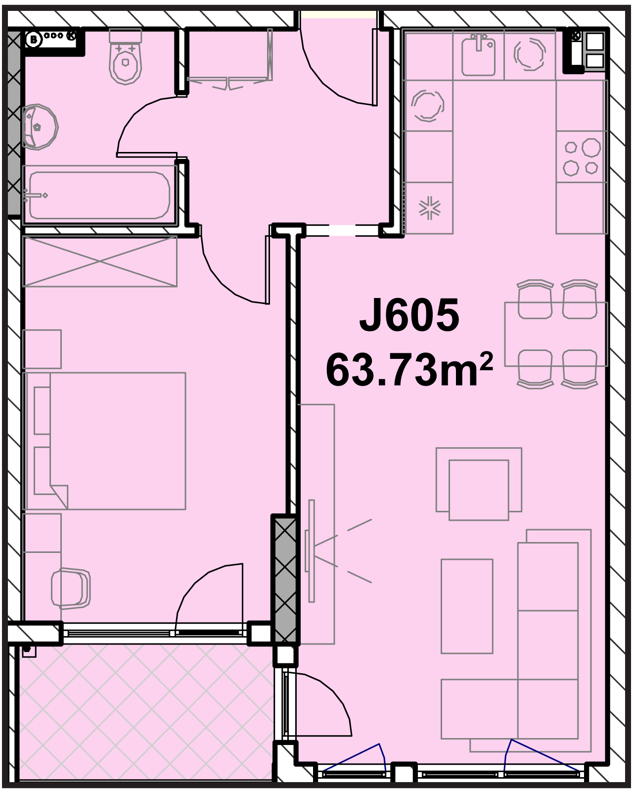 Етаж 7 от сграда Ж се състои от 9 апартамента с 1 или 2 спални и тераси.