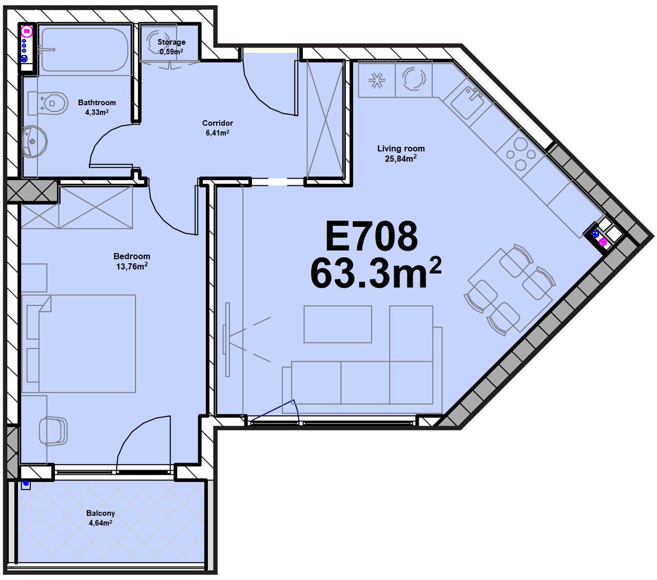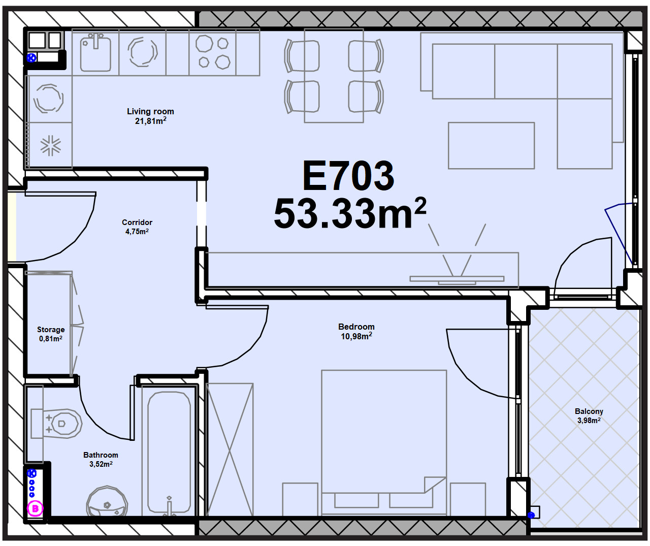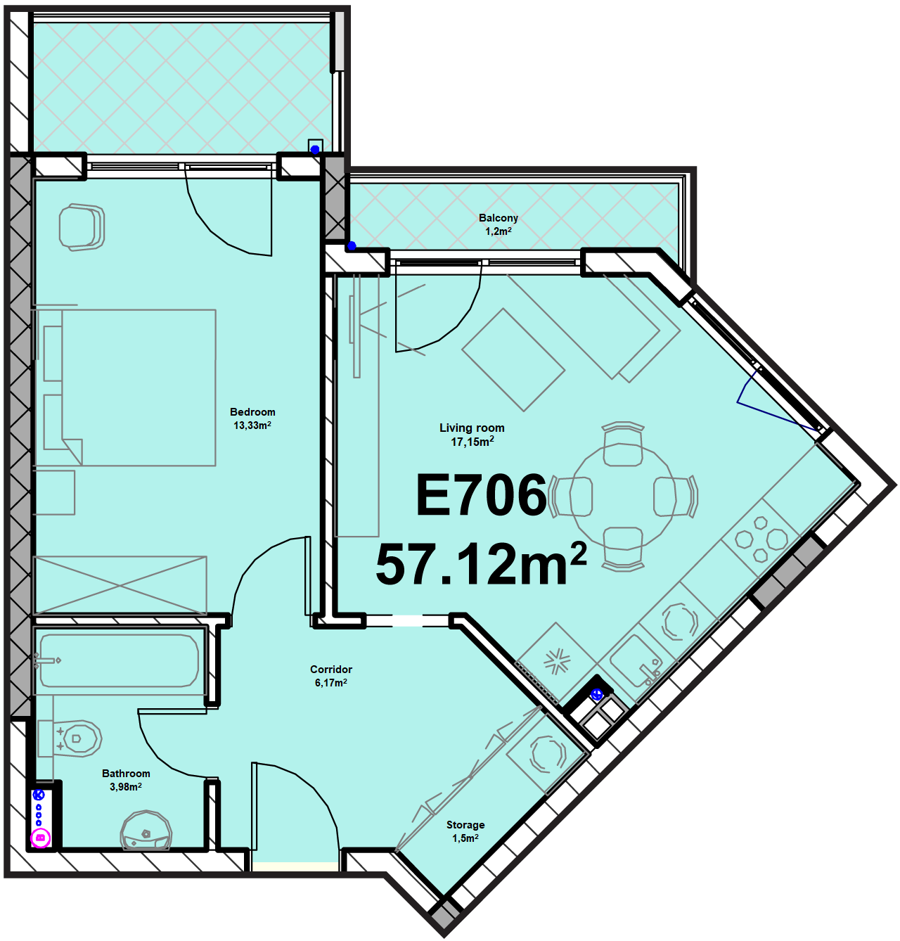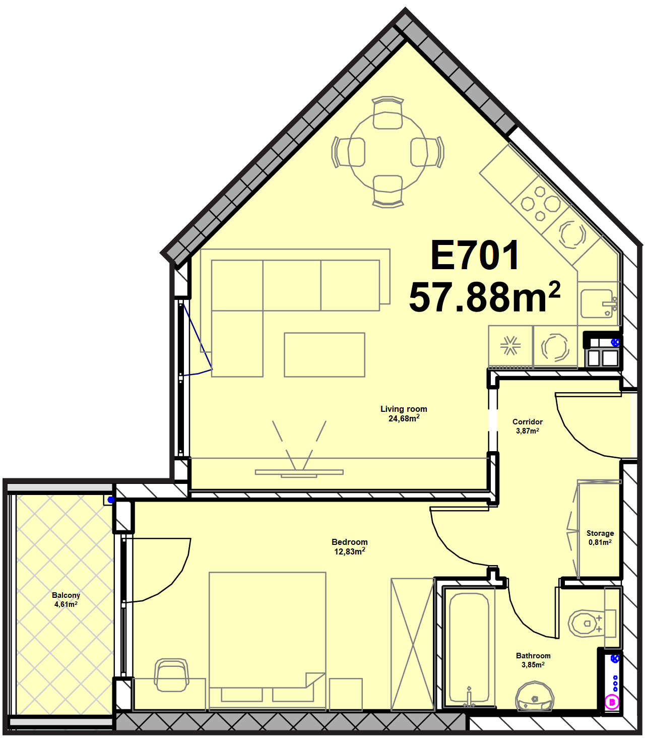 Floor 8 of Building E consists of 8 apartments with 1 or 2 bedrooms and terraces.
