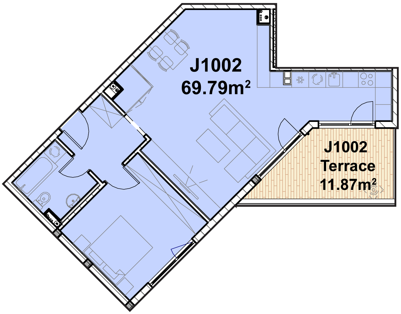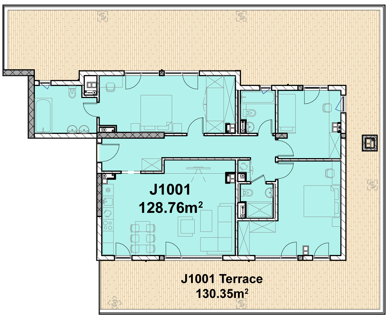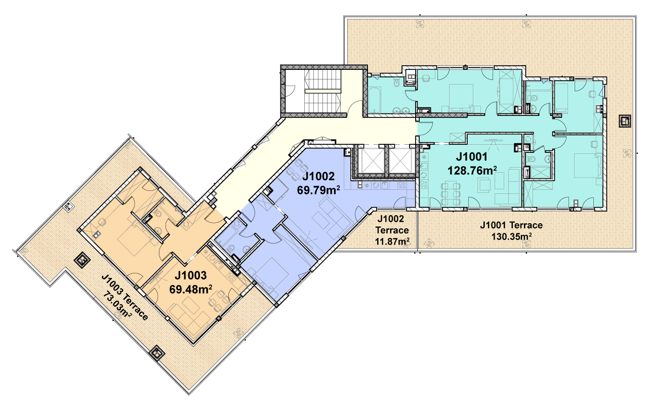 Floor 11 of Building J consists of 3 apartments with 1 or 3 bedrooms and terraces.
