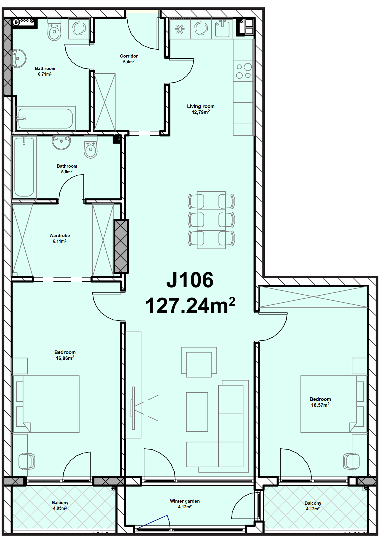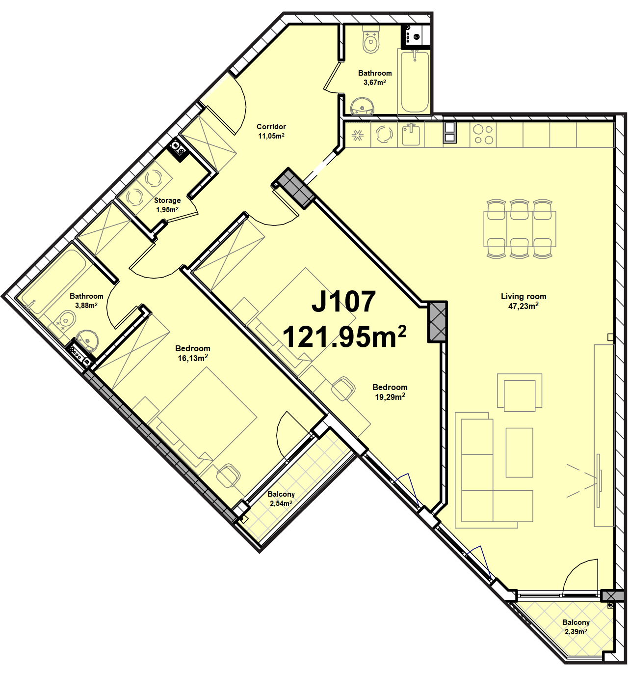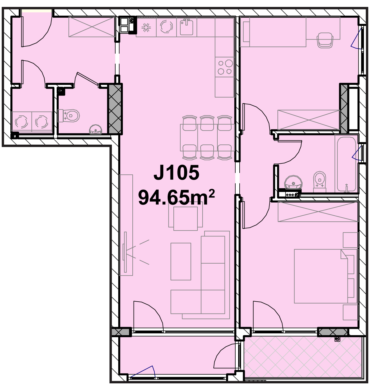 Floor 2 of Building J consists of 10 apartments with 1 or 2 bedrooms and terraces.