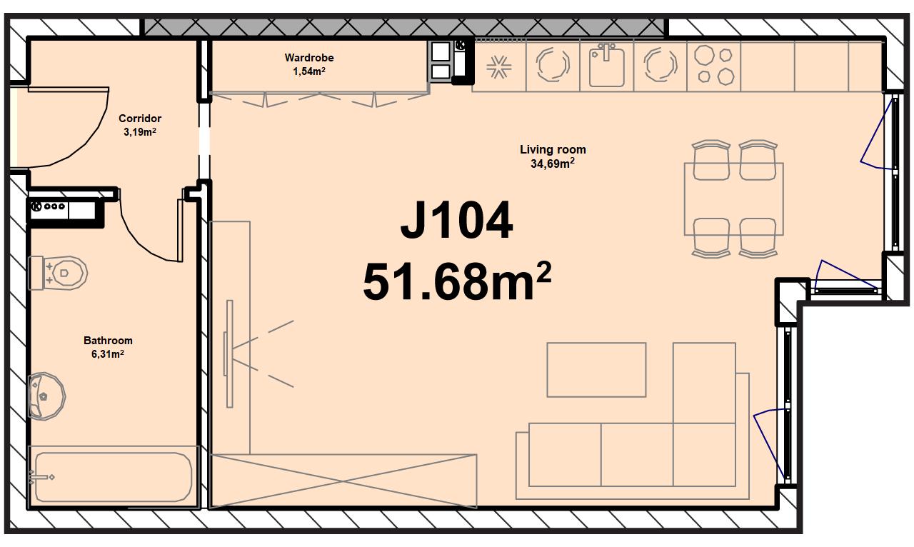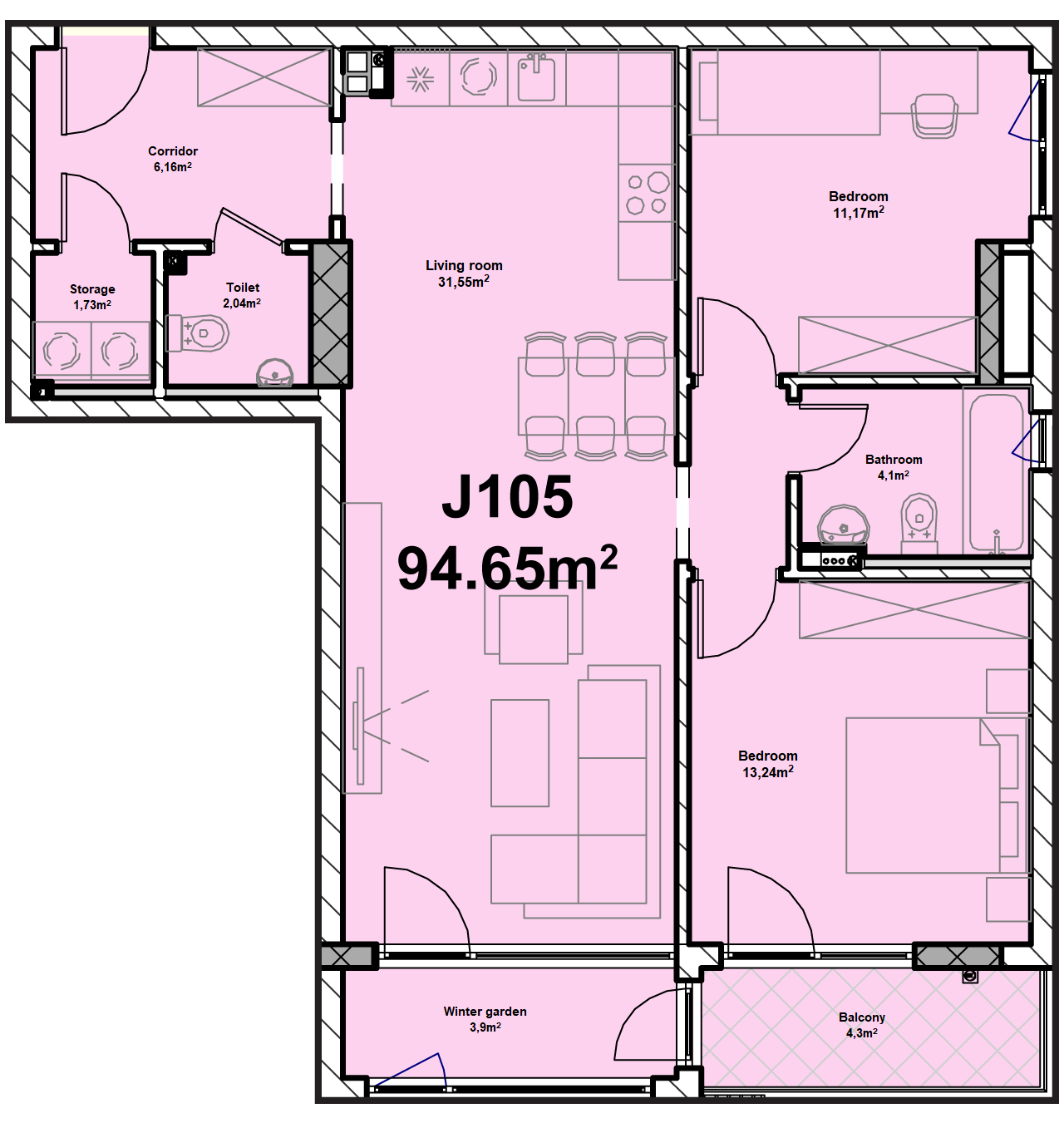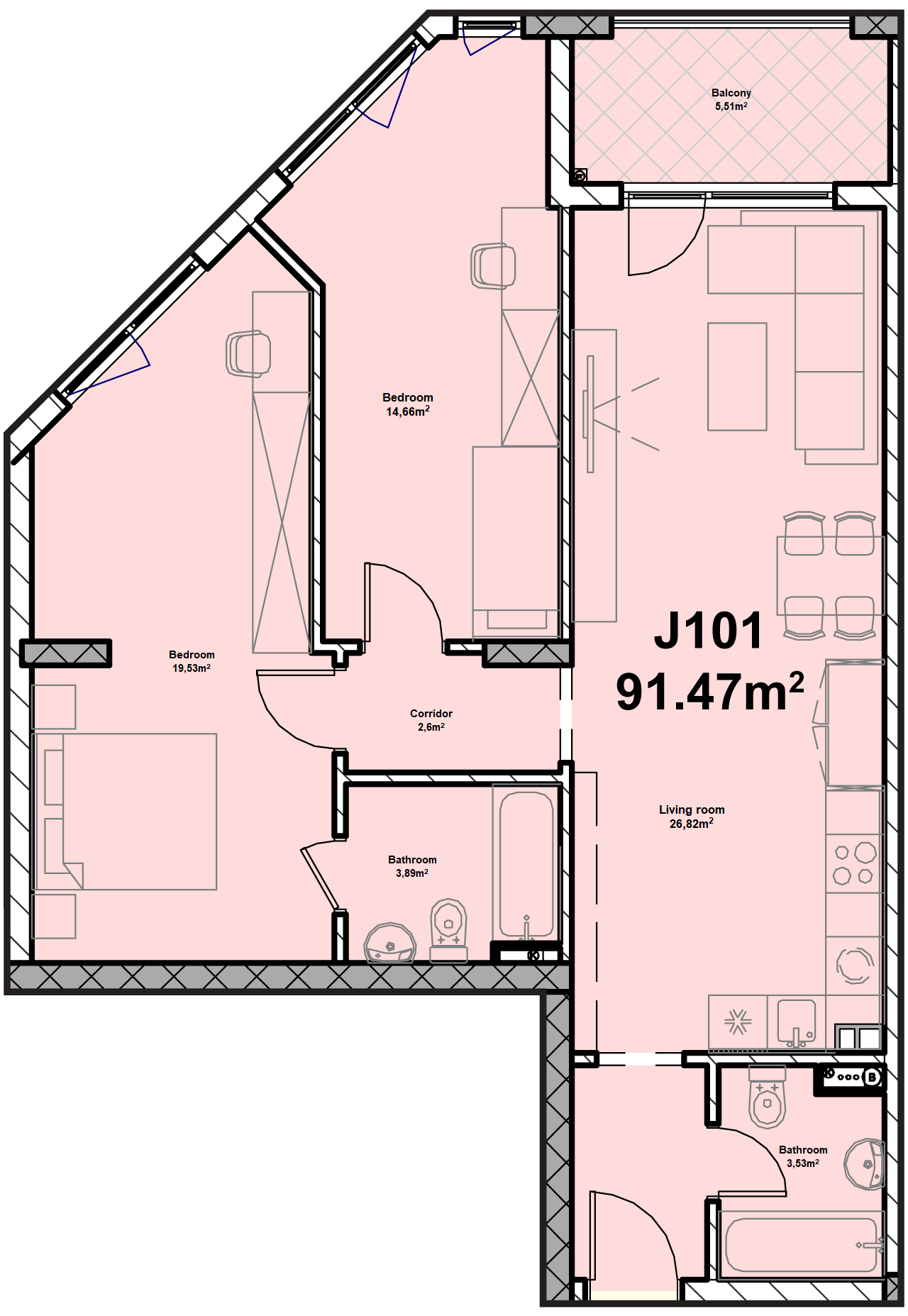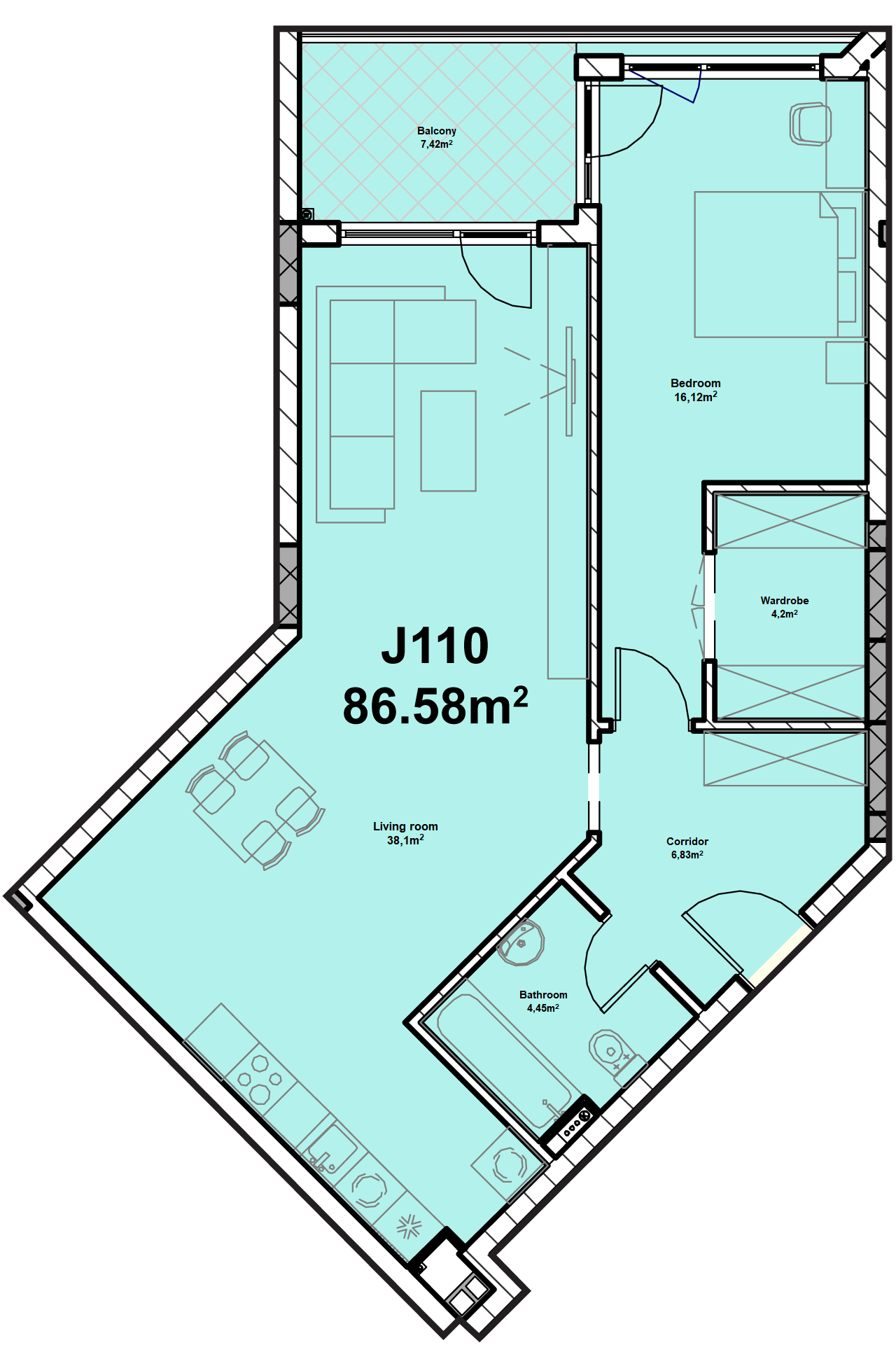 Floor 2 of Building J consists of 10 apartments with 1 or 2 bedrooms and terraces.