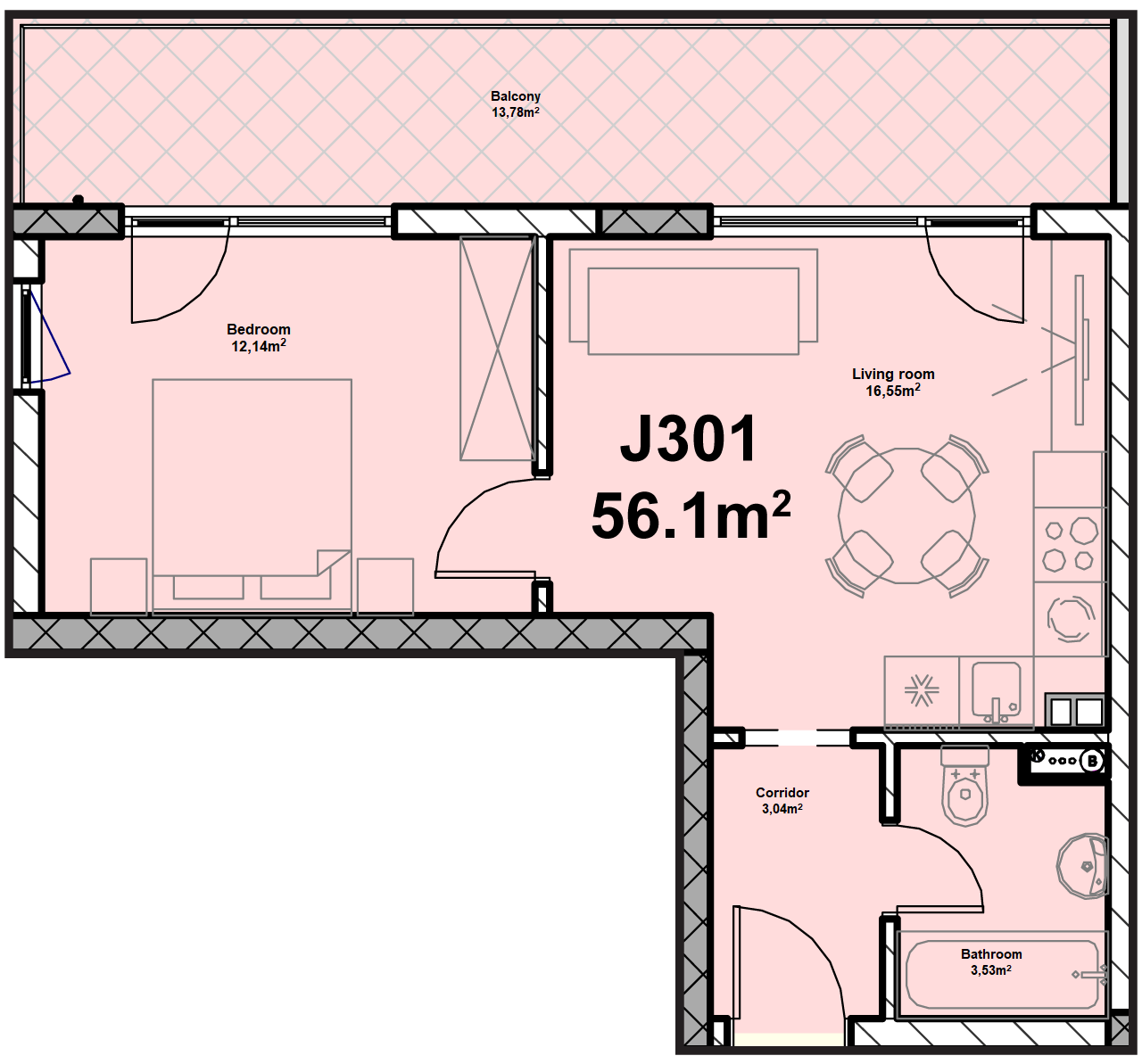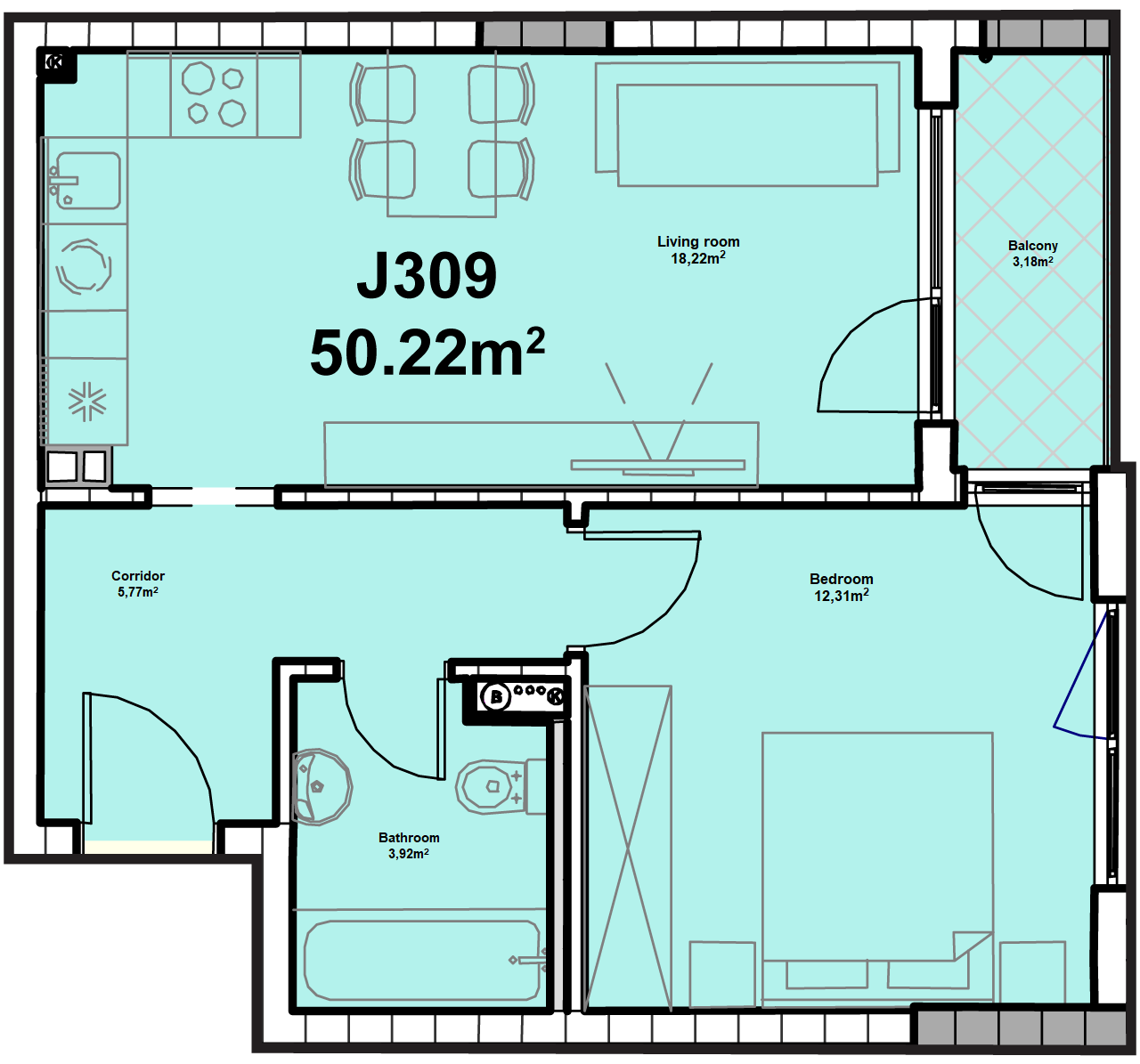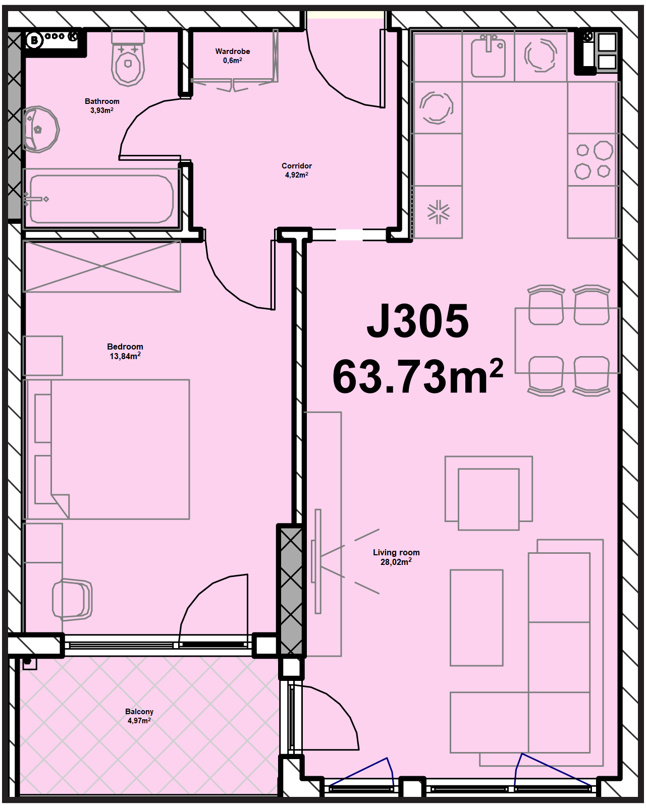 Floor 4 of Building J consists of 9 apartments with 1 or 2 bedrooms and terraces.