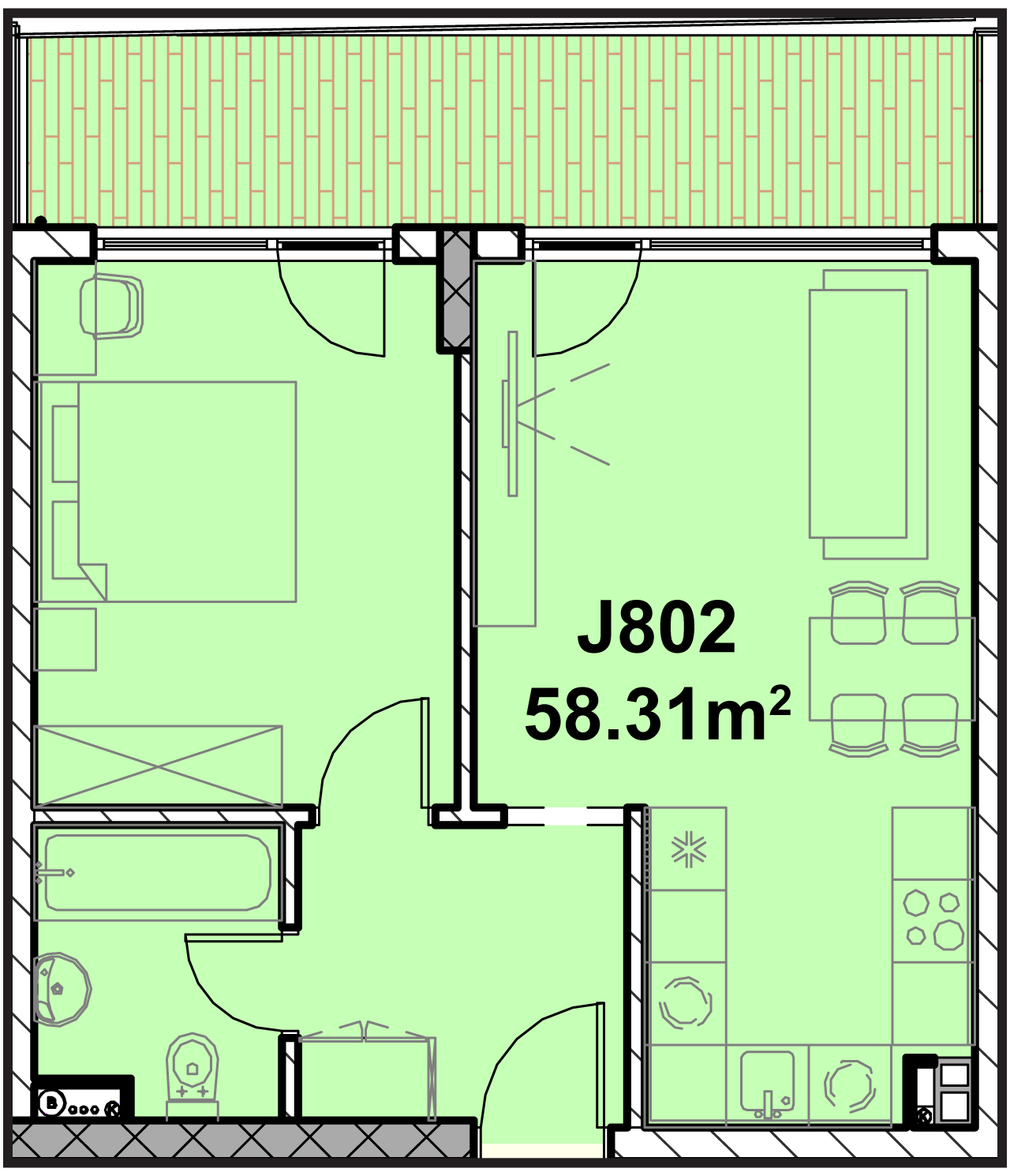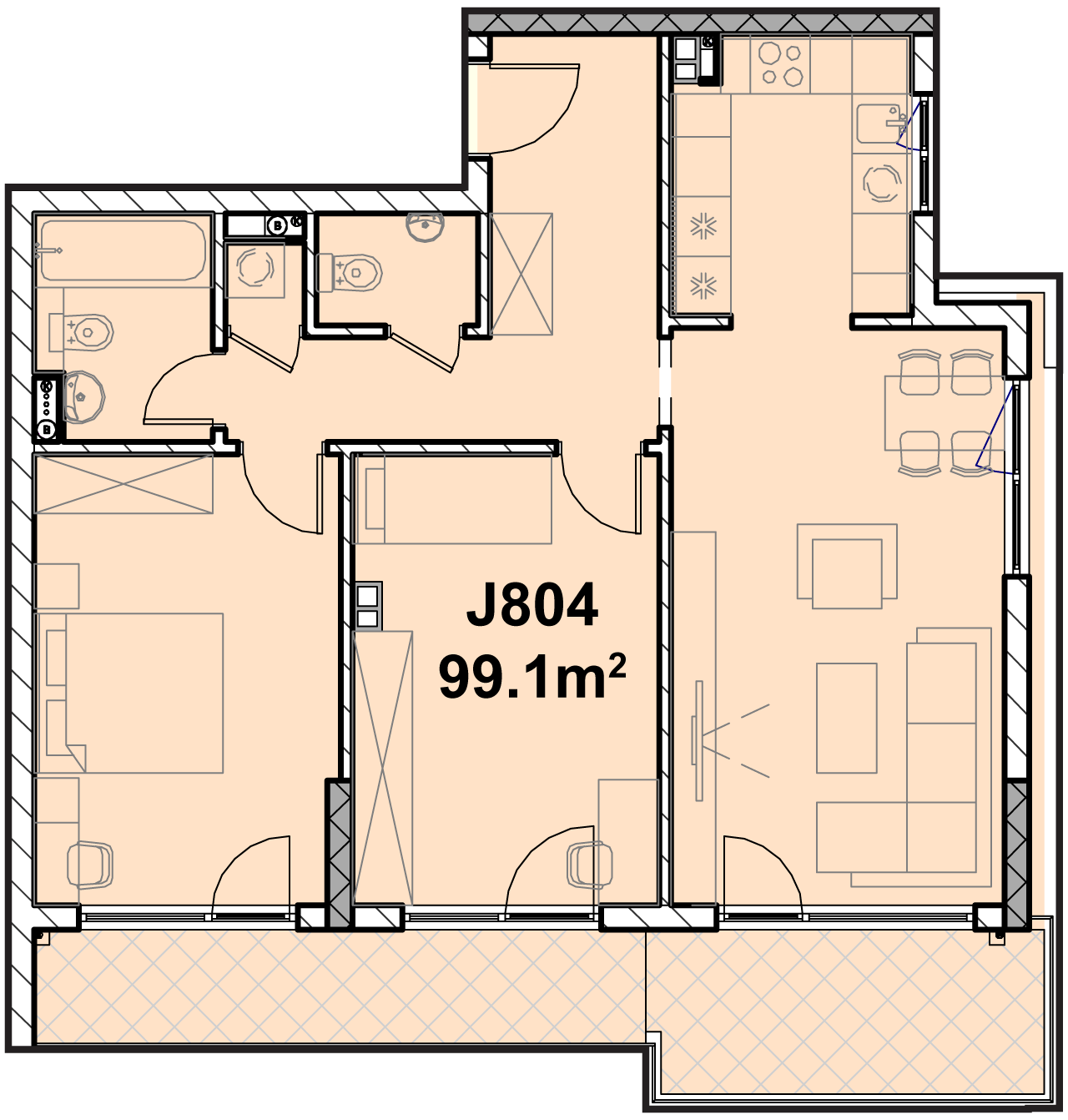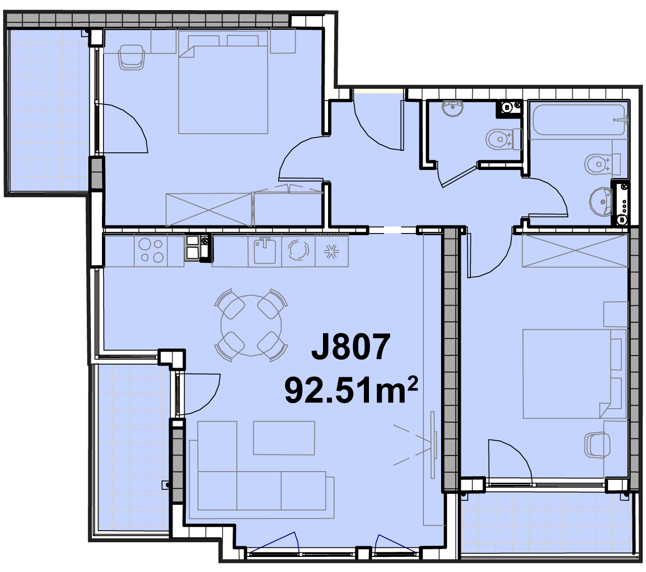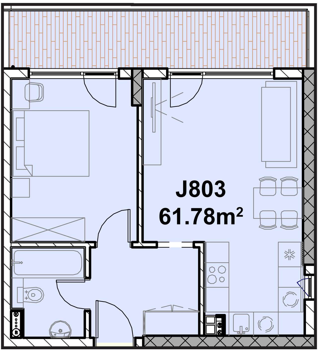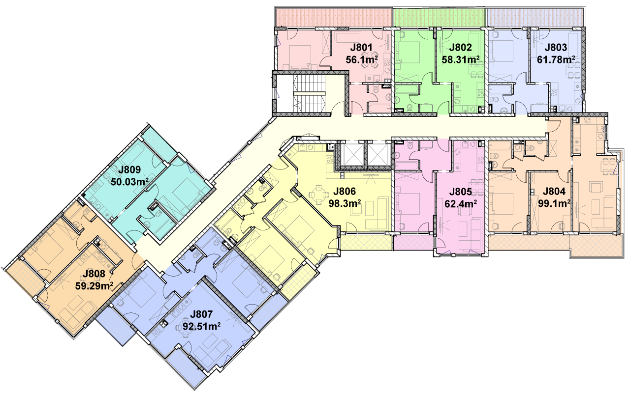 Floor 9 of Building J consists of 9 apartments with 1 or 2 bedrooms and terraces.