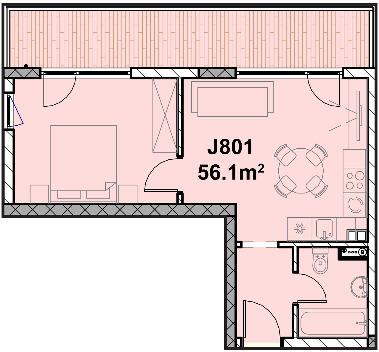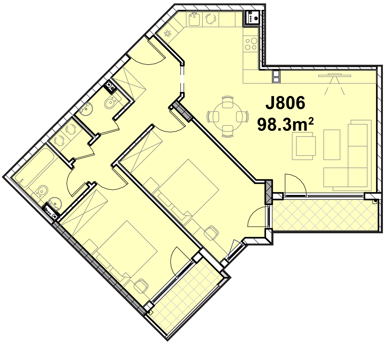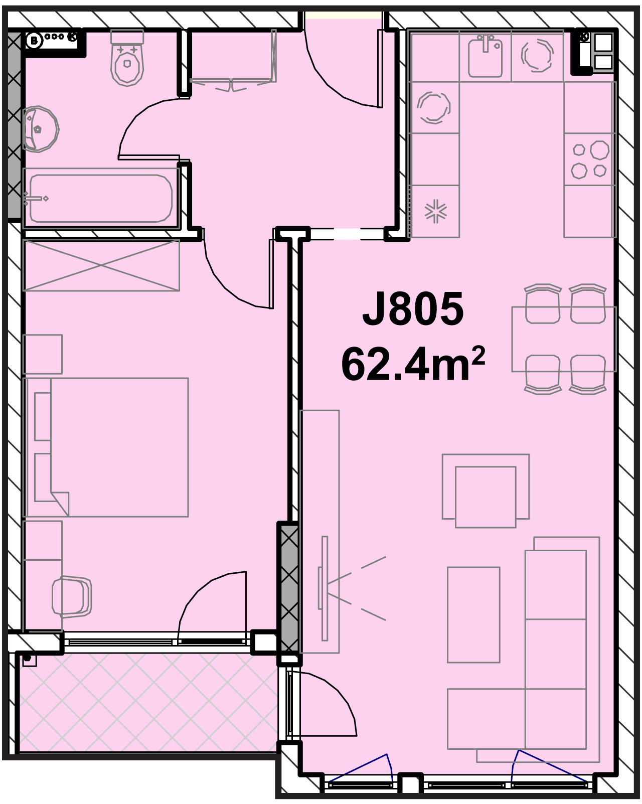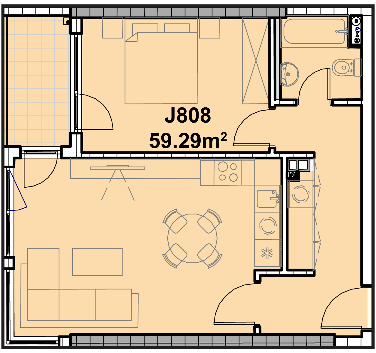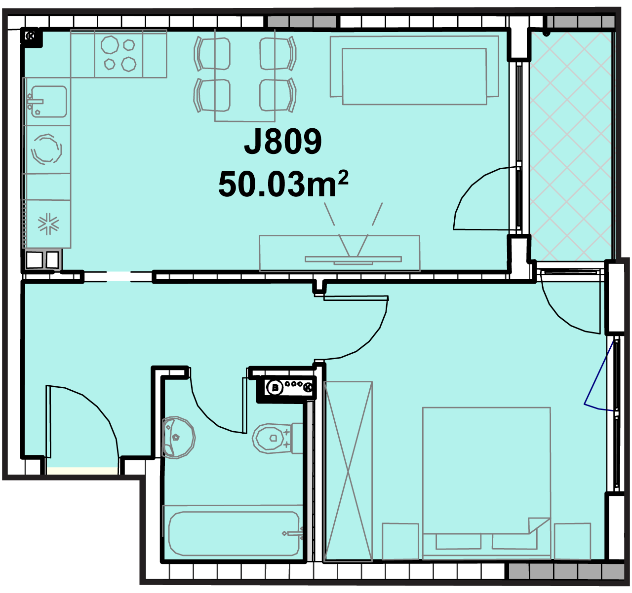 Floor 9 of Building J consists of 9 apartments with 1 or 2 bedrooms and terraces.